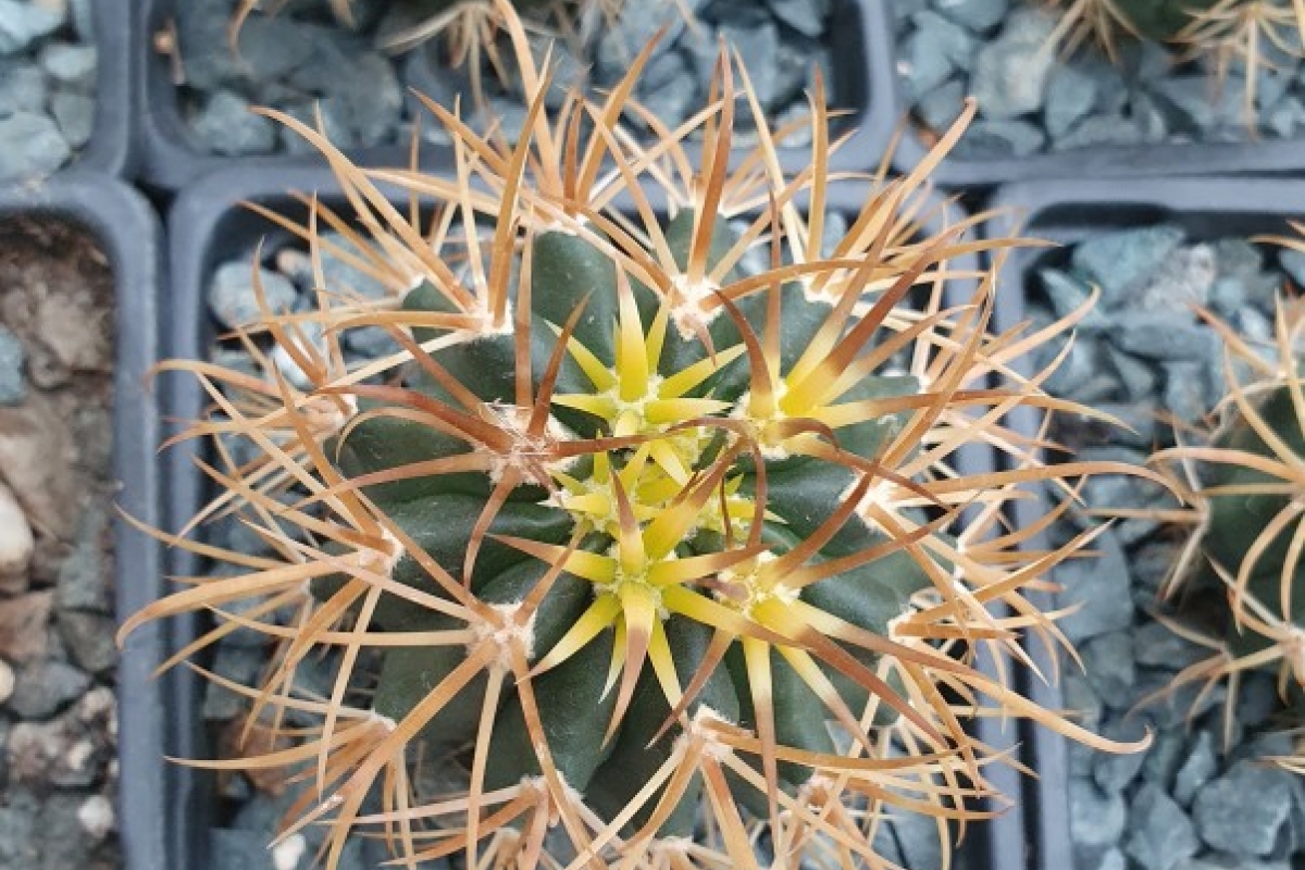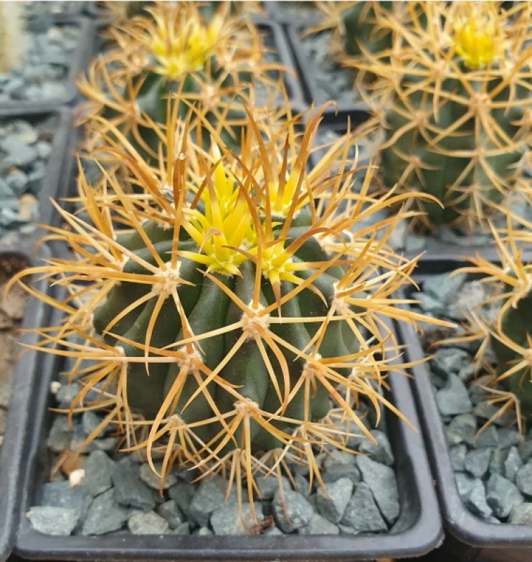 Stablo okruglo do cilindrično. Dostiže prečnik 30-40cm i visinu 90-100cm. Bodlje jake, guste žute boje